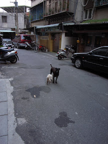 我女友家附近有兩三隻黑狗,感覺是那種黑的發亮的土狗,每隻都安安靜靜無所事事晃來晃去,每次經過都覺得會冷不防的咬我一口,可能是每天看我經過習慣了,對我也不理不睬。在這附近不只是狗,貓也特多,有時晚上經過,都會看到貓的出沒,有的喜歡在車頂上高高的看你,有的還會無聲無息在旁邊出現,有時會被嚇到。
